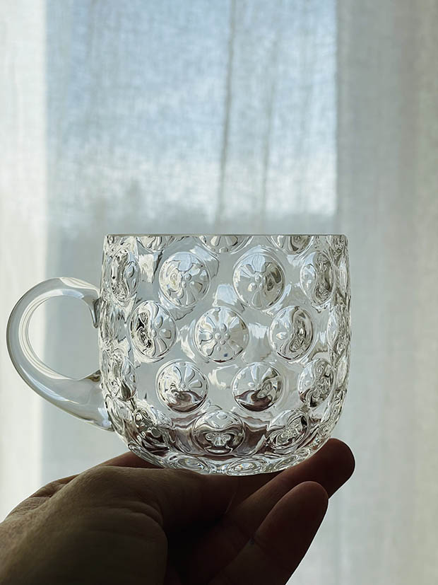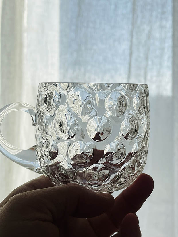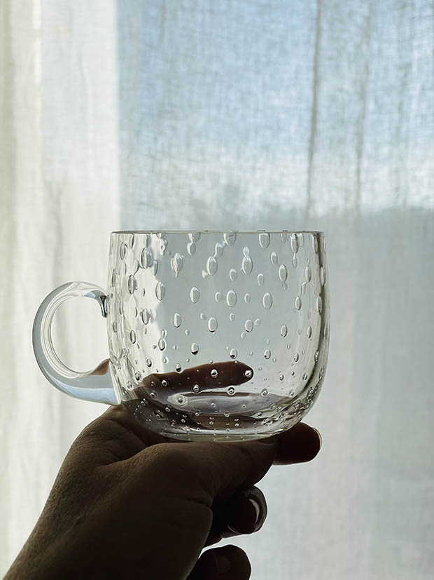 Pro naše babičky bylo krásné nádobí pokladem, který prostíraly jen při vzácných příležitostech. Přála bych si, aby i pro vás bylo mé sklo takový malý poklad, ale vyrobila jsem ho proto, aby s vámi žilo. Znám moc dobře každodenní život, takže se nemusíte bát se sklem připíjet na zdraví, ani ho mýt v myčce. A když něco rozbijete? Nevadí. Můžete si v e-shopu koupit i jeden jediný kus.