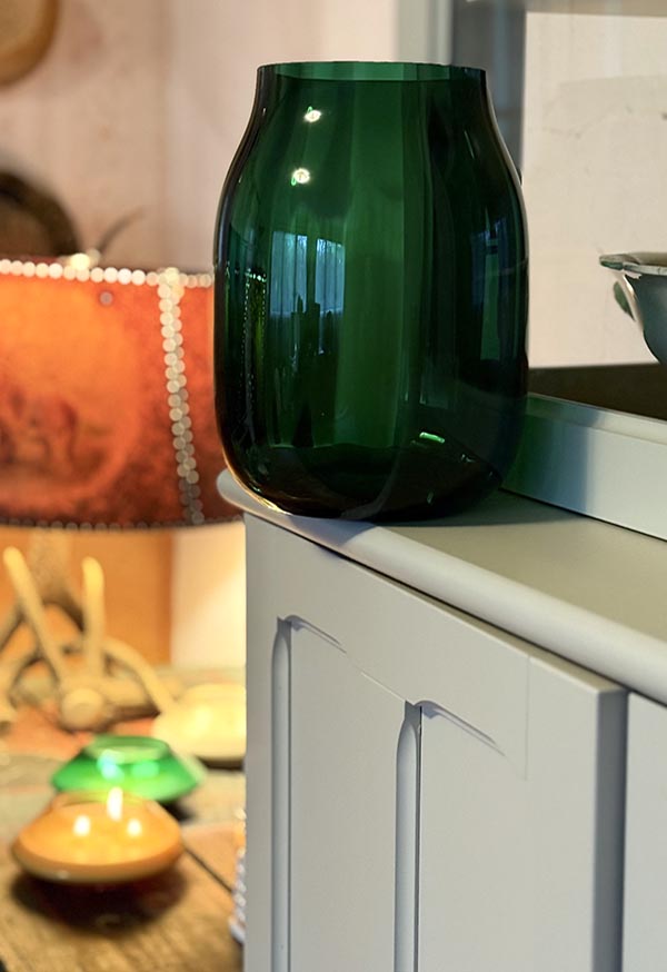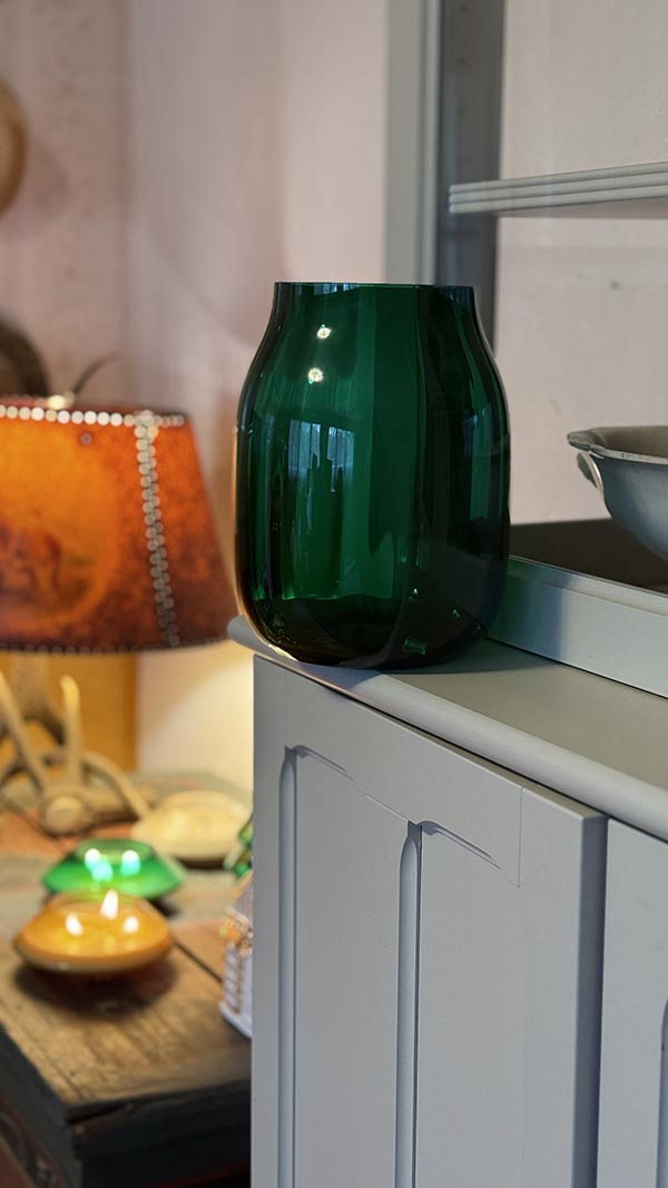 Ručně foukaná váza z českého bezolovnatého křišťálu “Mařenka” v dechberoucí barvě smaragdu. Tato váza je esencí těch nejkrásnějších vlastností křišťálu, je oslavou světla, kterému dává život. Jedinečný vzor a citlivá ruční výroba umožňují světlu zrozenému ze svítání i ze západu slunce rozehrát symfonii lomů, odlesků a třpytu, která je oslavou každé květiny i každého okamžiku všedního dne. Krásně se kombinuje s moderními i klasickými typy nádobí i interiérů a povýší jakékoliv zátiší na umělecké dílo. Každý kus je ručně vyrobený originál.