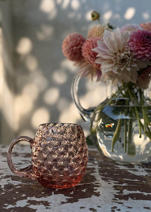 Netradiční klasický křišťálový ručně foukaný půllitr Puntík – v jemném růžovém odstínu s motivem puntíku – pro pivečko točené nebo i čistou pramenitou vodu ❤️.
