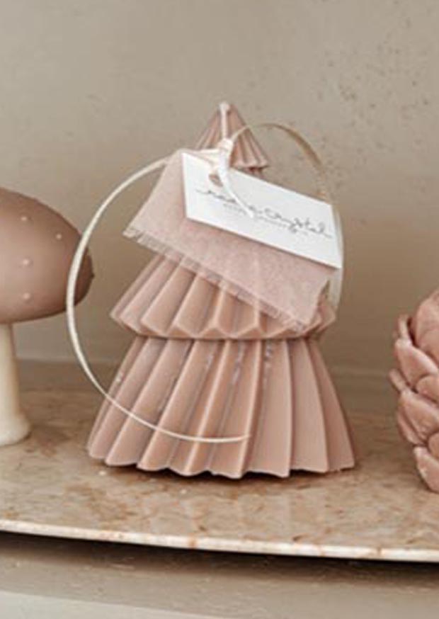 Řemeslná ručně vyráběná svíčka ve tvaru stromečku.