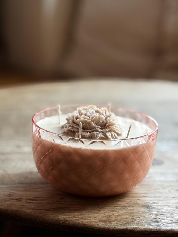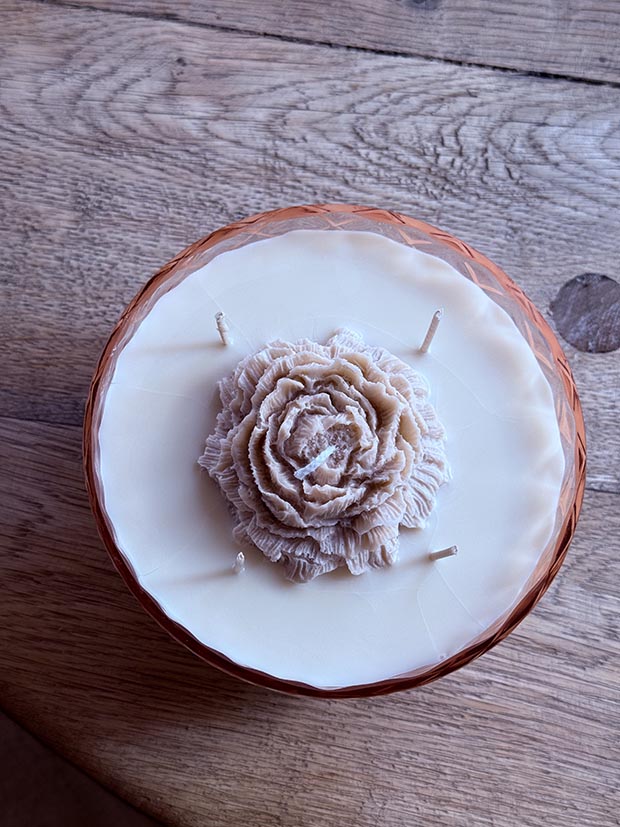 Svíčka/miska s ručně vyrobenou pivoňkou