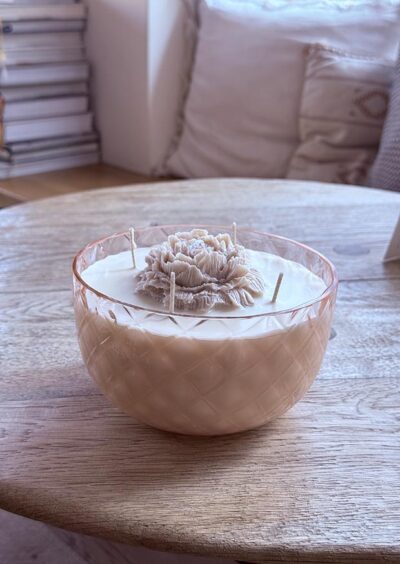 Krásné chvíle se spojují s vůněmi, proto jsem naplnila misky přírodním sójovým voskem a vdechla do něj mnoho rozmanitých vůní. Přála bych si, aby byla tahle svíčka oslavou lásky ke všemu, co je vám drahé; lásky k rodině, k přátelům, ke všemu, co nám život daruje.